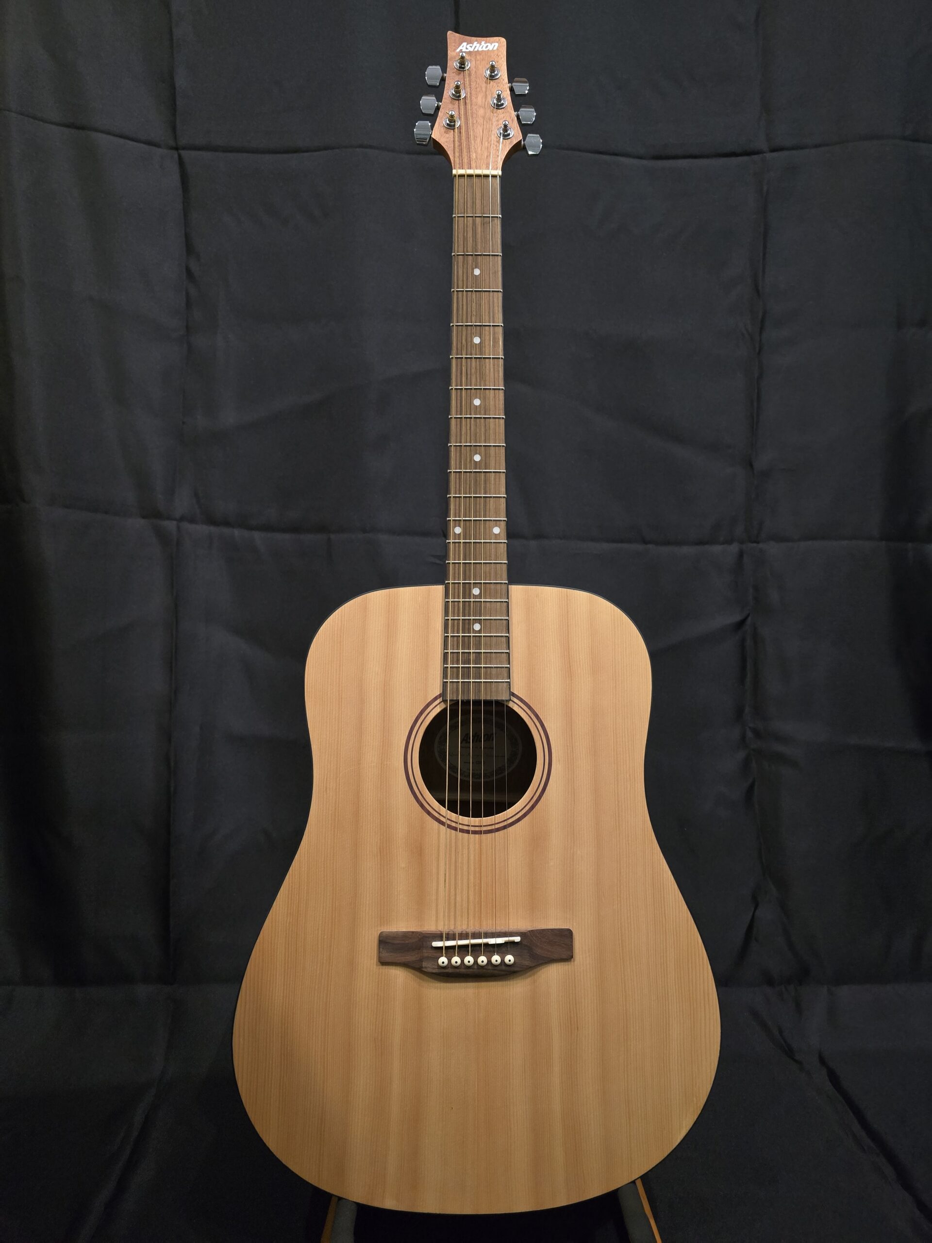 De Ashton D20 Dreadnought akoestische gitaar is een indrukwekkend instrument dat vakmanschap combineert met hoogwaardige materialen om een rijke en gebalanceerde klank te leveren. Met zijn klassieke Dreadnought-vorm, biedt deze gitaar een krachtige projectie en een vol geluid, waardoor het een uitstekende keuze is voor zowel beginners als ervaren gitaristen.
