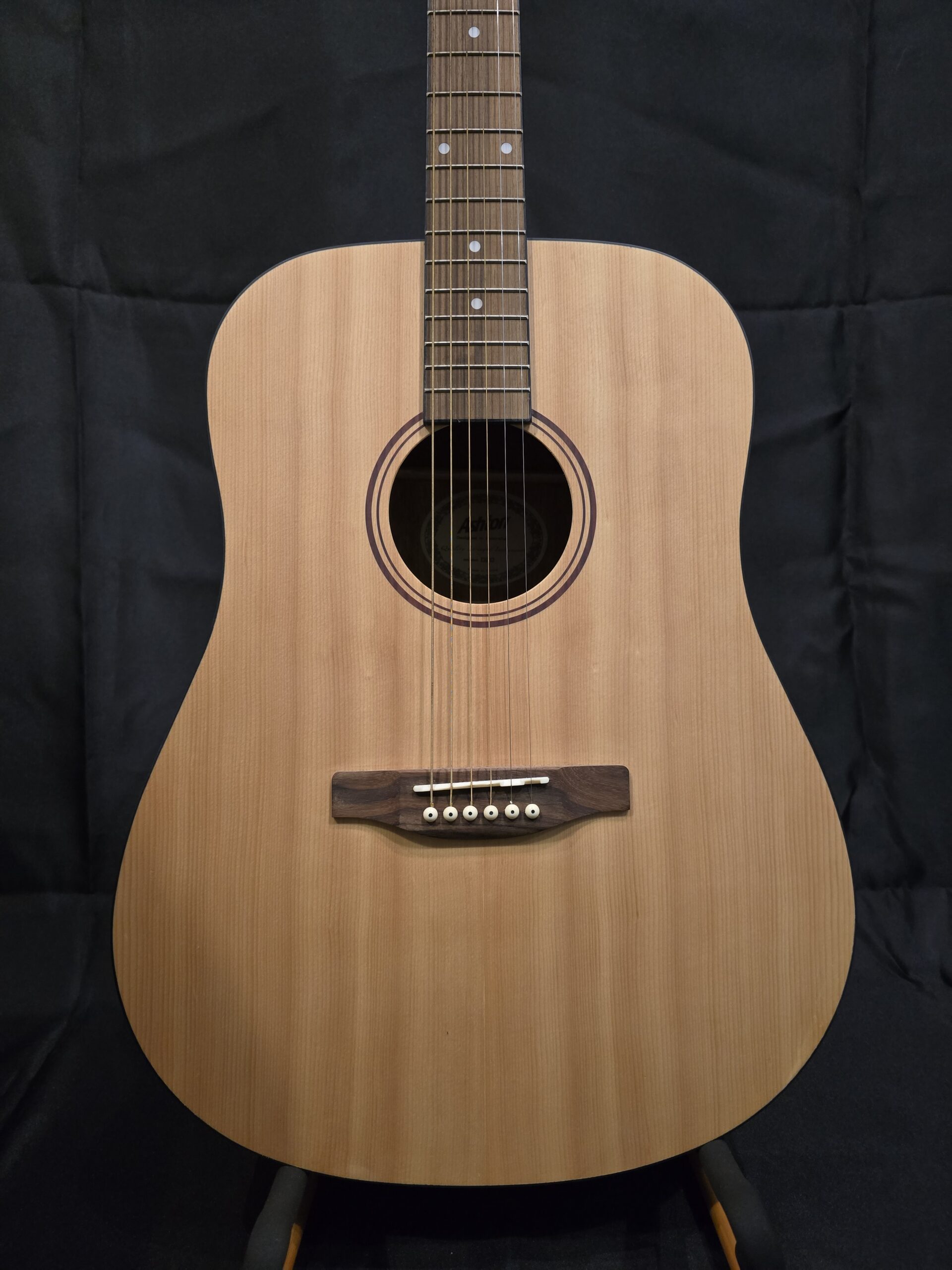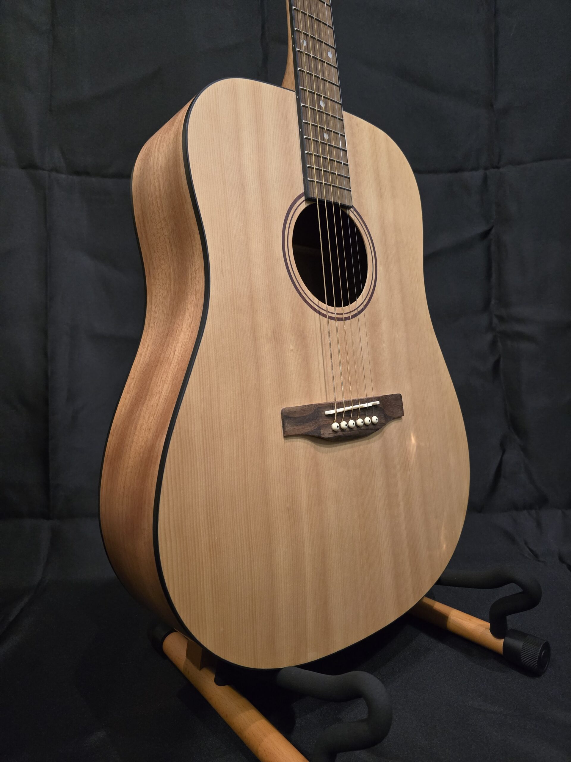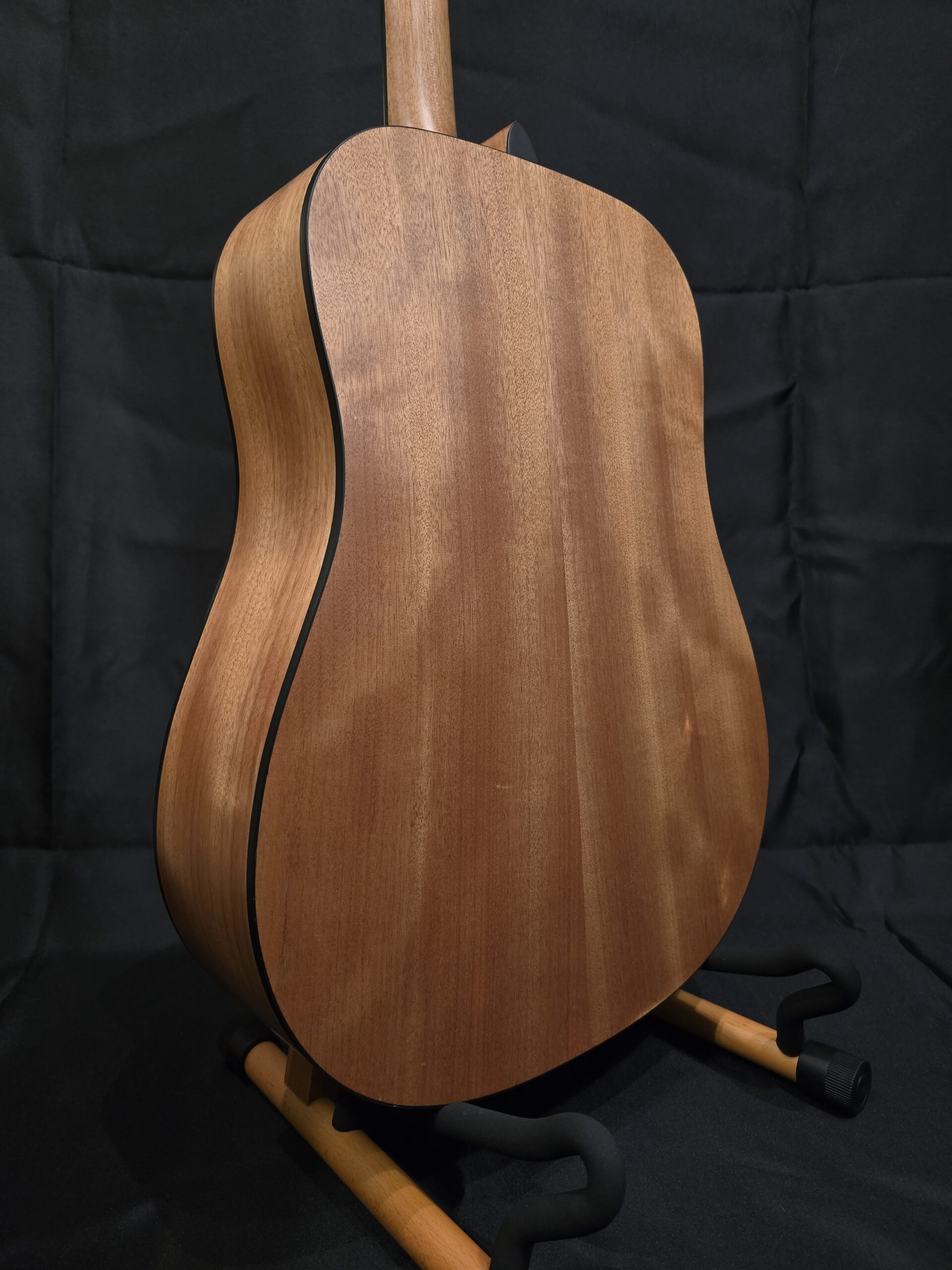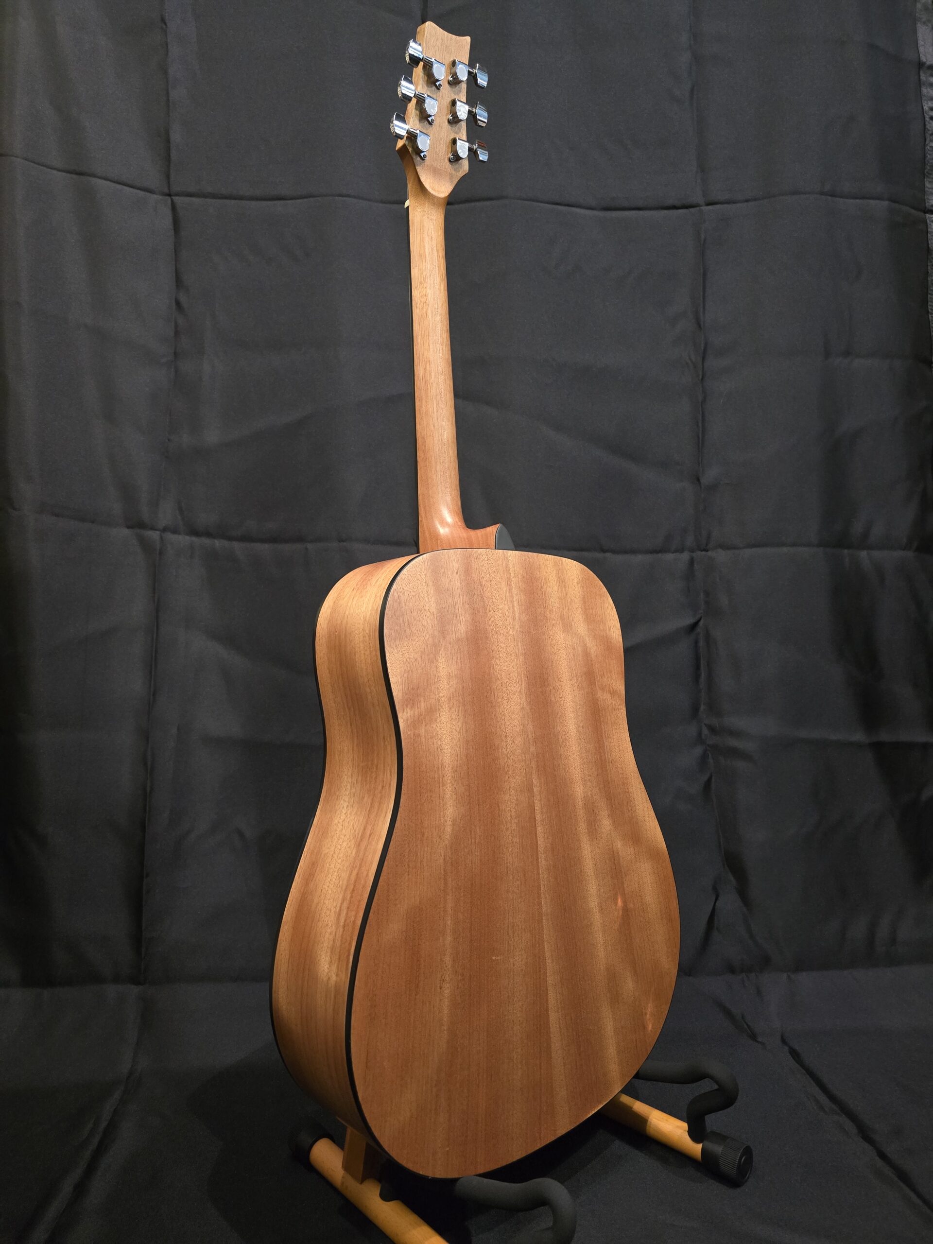 Het bovenblad van de Ashton D20 is vervaardigd uit massief sparrenhout, wat bekend staat om zijn resonantie en helderheid. Dit zorgt voor een levendig geluid met een goed gedefinieerde toon, waardoor zowel akkoorden als individuele noten goed tot hun recht komen. De body van de gitaar is gemaakt van basswood, wat bijdraagt aan het lage gewicht van het instrument en toch een warme klank biedt.