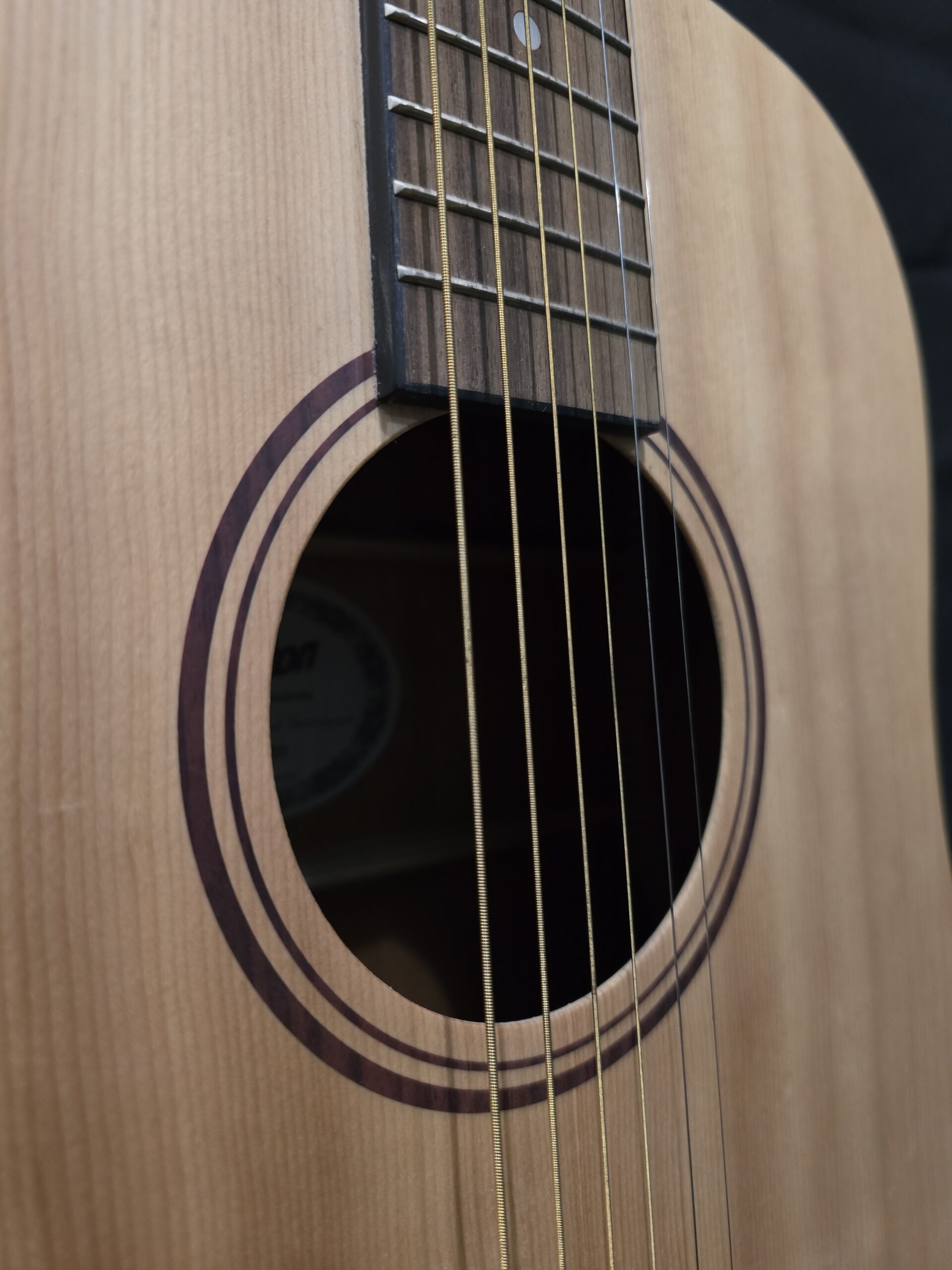 Het gebruik van thermisch bewerkt naaldhout voor zowel de toets als de brug voegt een extra element van duurzaamheid en stabiliteit toe aan de gitaar. Dit specifieke type hout heeft vaak een hogere dichtheid en kan weerstand bieden tegen veranderingen in vochtigheid en temperatuur, wat gunstig is voor het behoud van de gitaar in verschillende omgevingen.