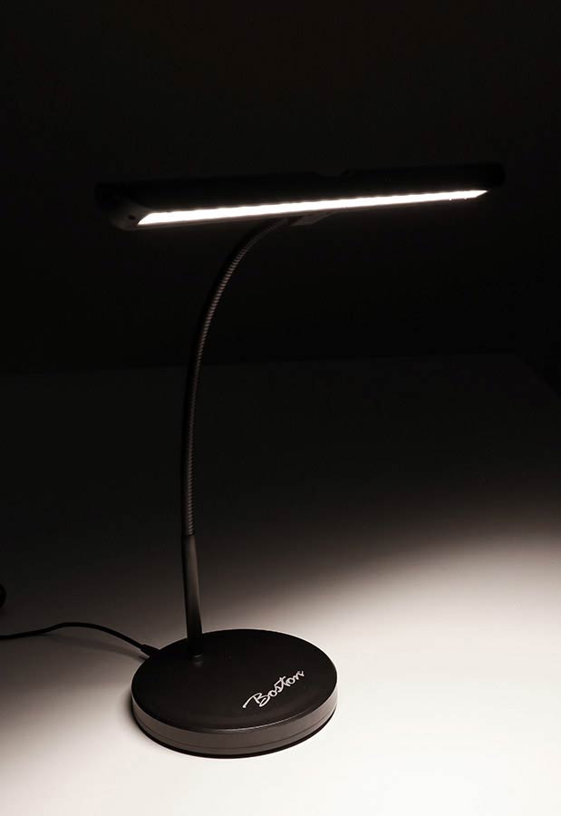 Zwarte kunstof pianolamp met 18 heldere LED lampjes. Deze lamp is warm wit en dimbaar. Deze is eenvoudig in hoogte te verstellen door een soepele zwanenhals(26cm) en is daarom ideaal op een akoestische en digitale piano als ook op een klassiek orgel. De ronde verzwaarde voet heeft een diameter van 14,5cm en de maximale hoogte is 37 cm De lamp word geleverd incl. adapter.