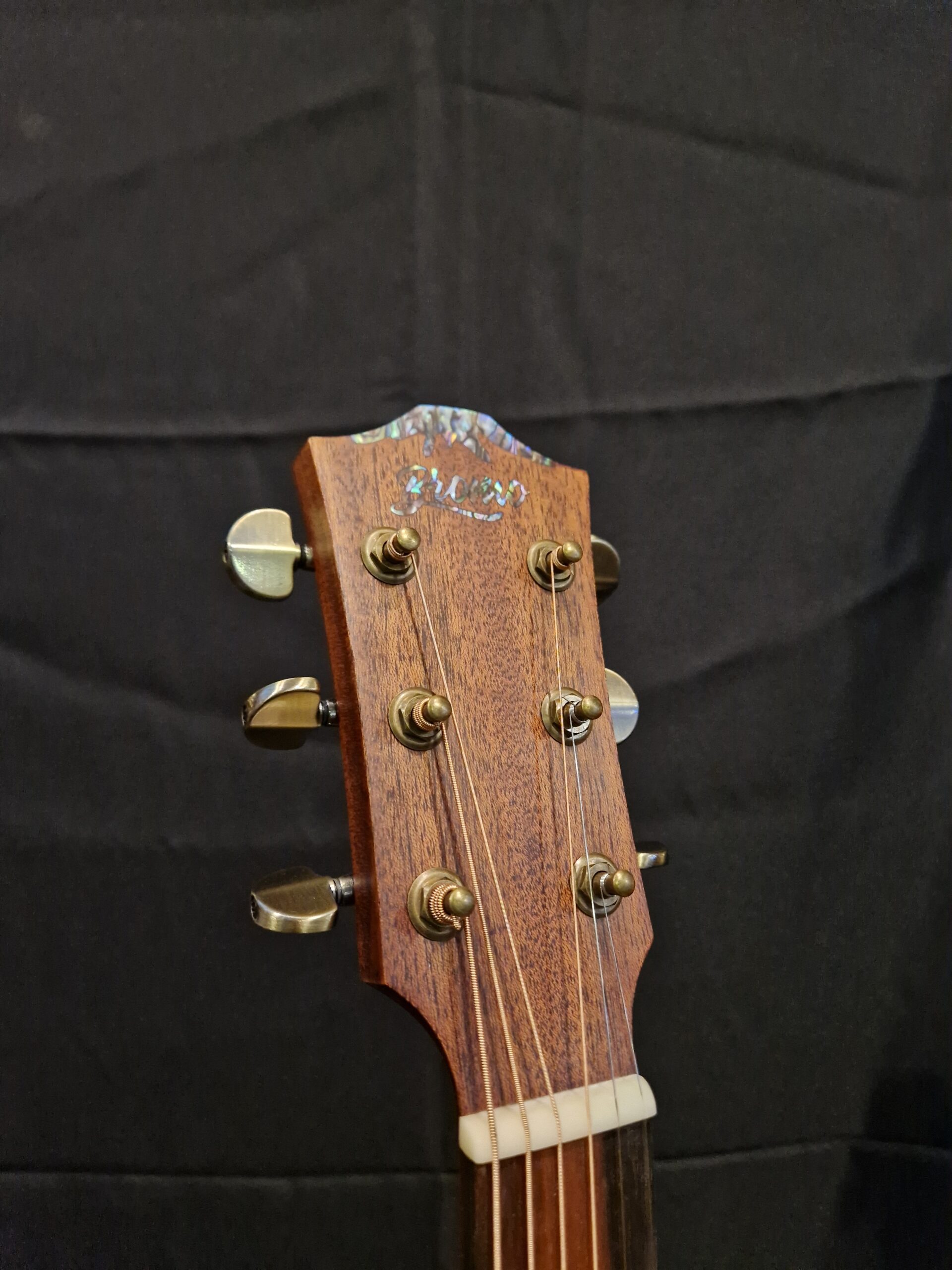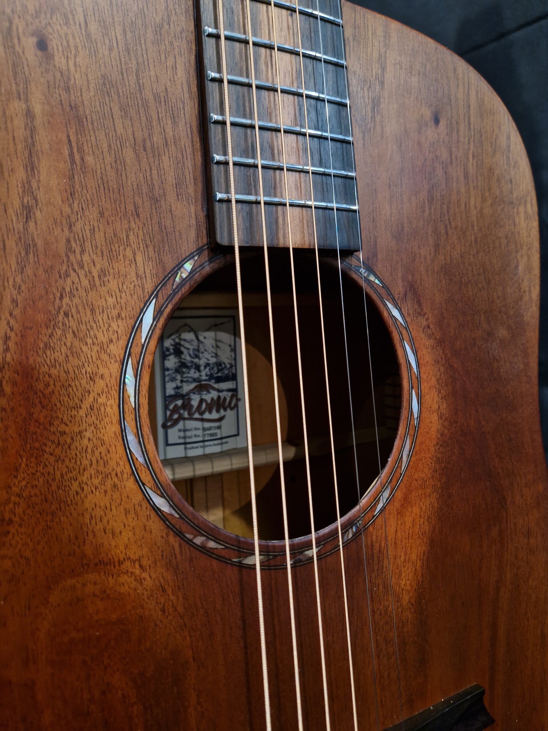 - Headstock logo: Mt. Bromo, abalone