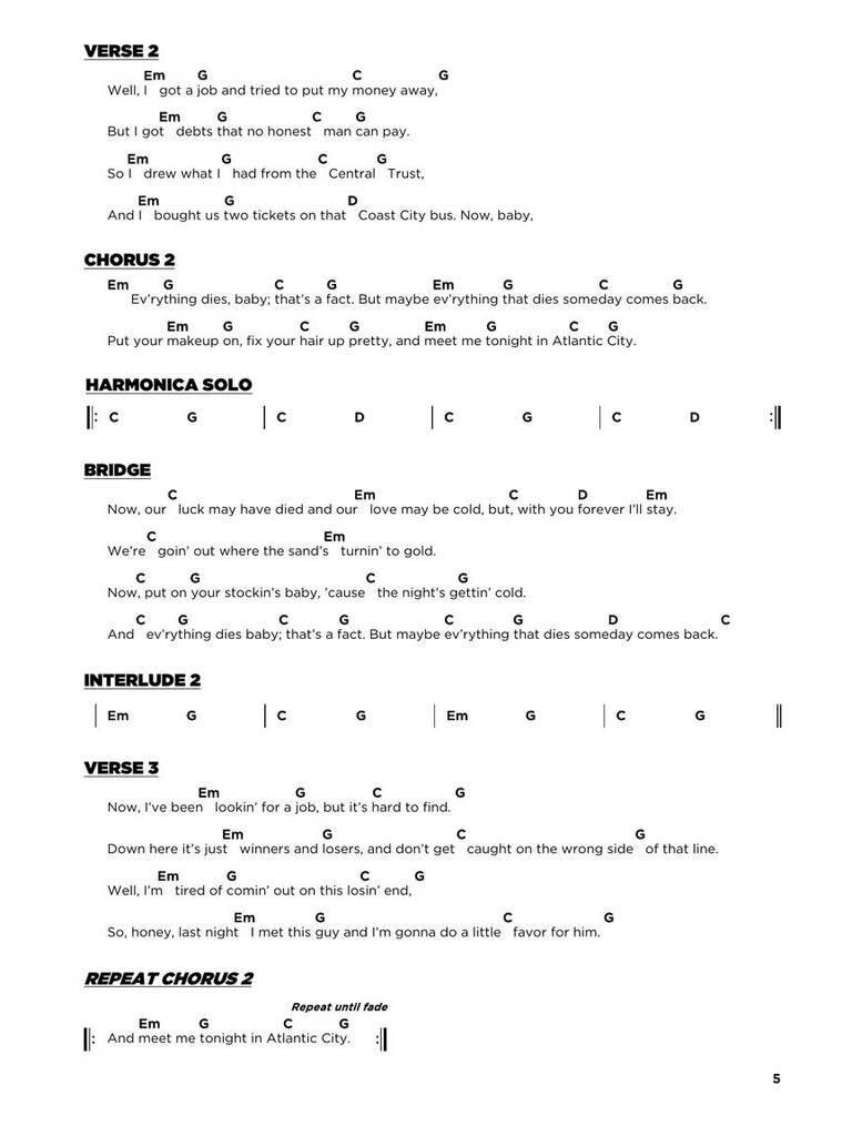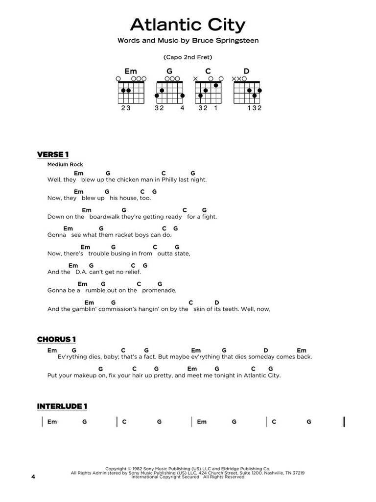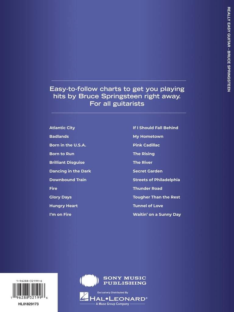 Deze Really Easy Guitar-compilatie van hits van Bruce Springsteen biedt u de mogelijkheid om de iconische nummers van het diepe Amerika op uw gitaar te spelen. Elk arrangement, goedgekeurd door de artiest, bevat eenvoudig te volgen partituren met songteksten, akkoorden en basistabulaturen. Met 22 onmisbare nummers, variërend van rockhymnes tot soulballads, biedt deze compilatie een selectie die de onvergelijkbare spirit en het vertellende talent van Springsteen perfect weergeeft. Inclusief nummers: Atlantic City · Badlands · Born in the U.S.A. · Born to Run · Brilliant Disguise · Dancing in the Dark · Downbound Train · Glory Days · Hungry Heart · My Hometown · Pink Cadillac · The River · Secret Garden · Streets of Philedelphia · Thunder Road · Tougher Than the Rest · Waitin’ on a Sunny Day · en nog veel meer!