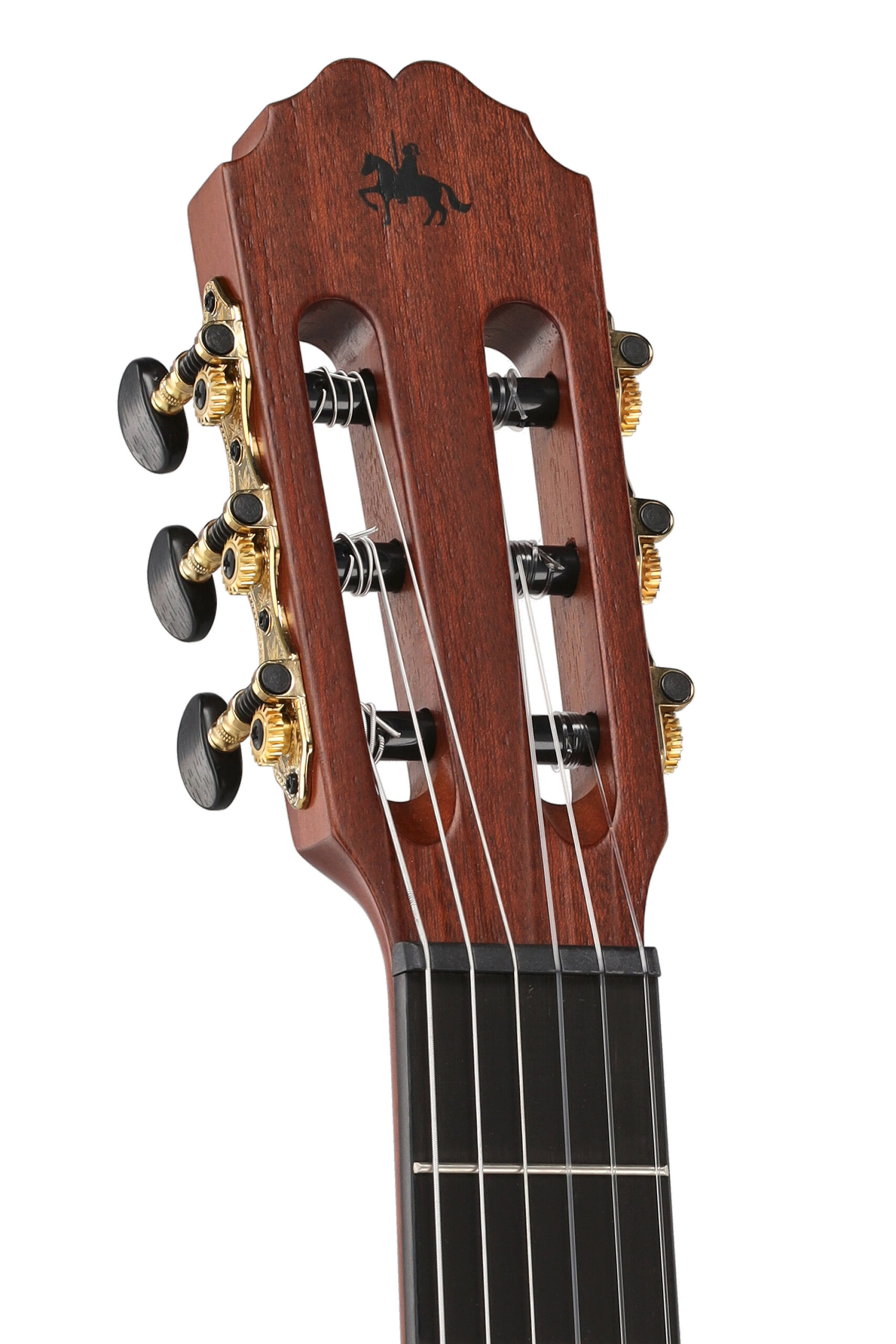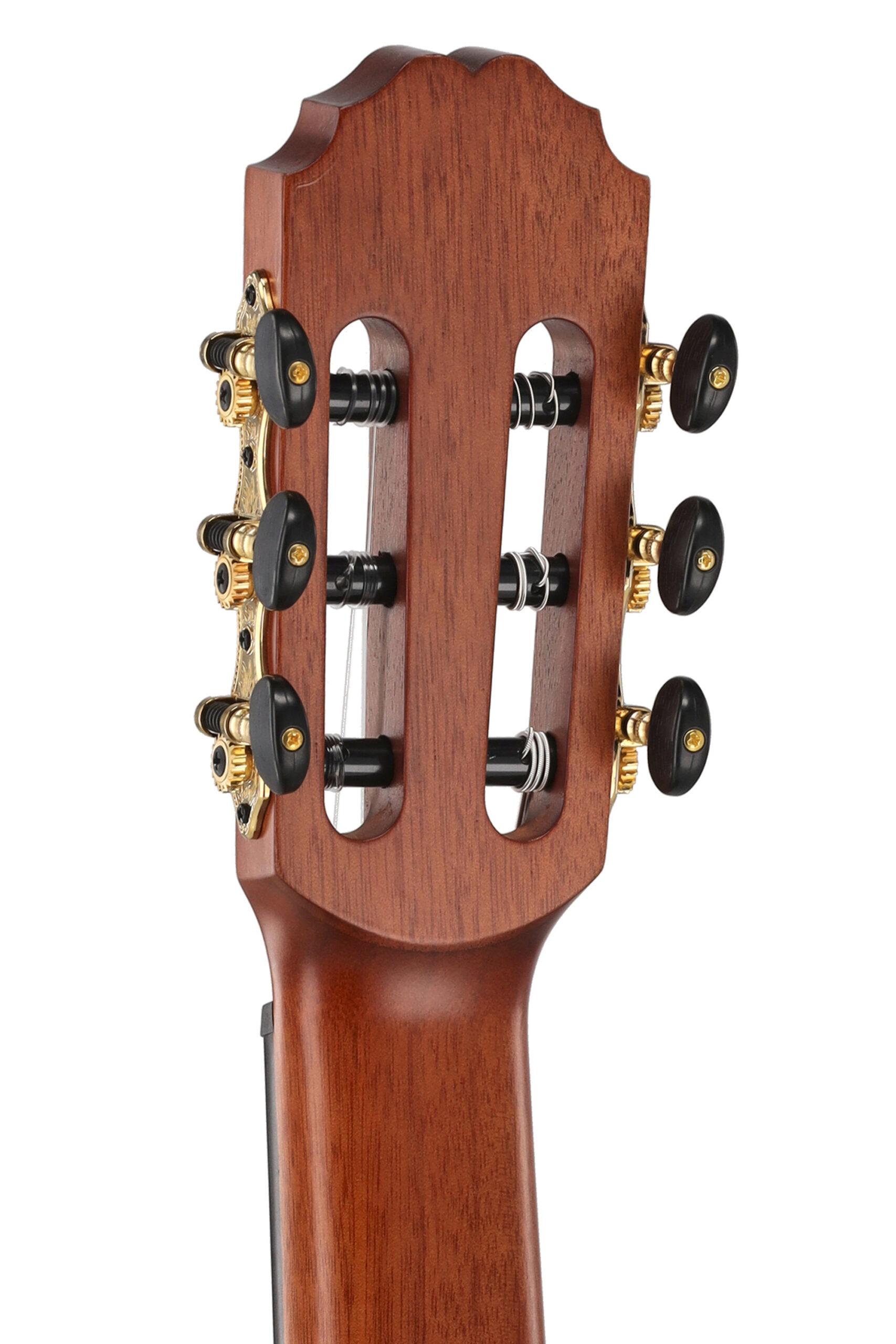 Af fabriek is de gitaar uitgerust met Hannabach 600HT nylon snaren met carbon G3 snaar, geproduceerd in Duitsland, die zorgen voor een heldere en gebalanceerde klank.