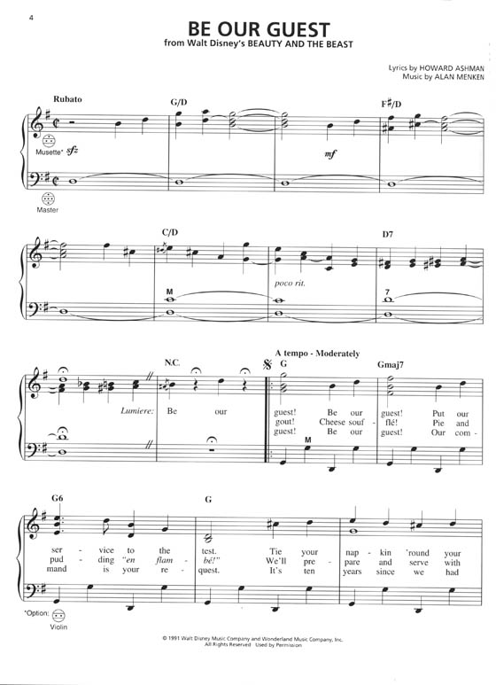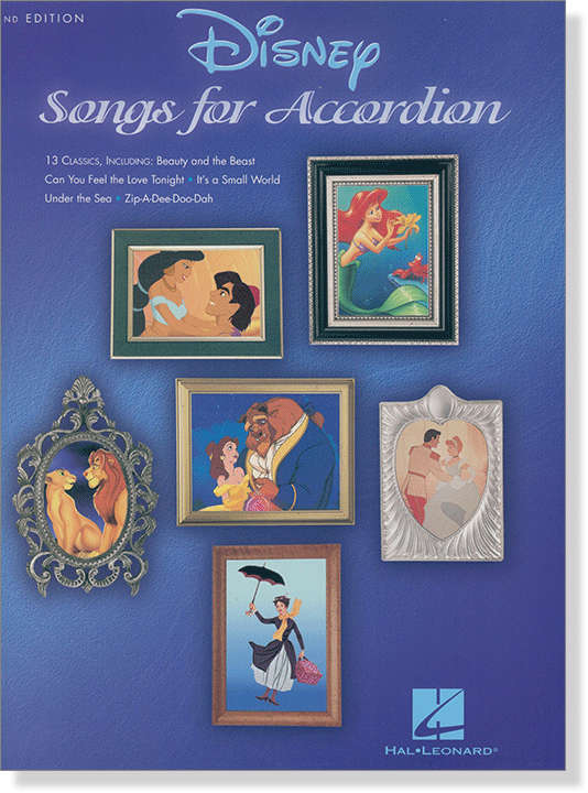 Een verzameling bladmuziek voor accordeon met liedjes uit klassieke Disney-animatiefilms: Belle en het Beest,