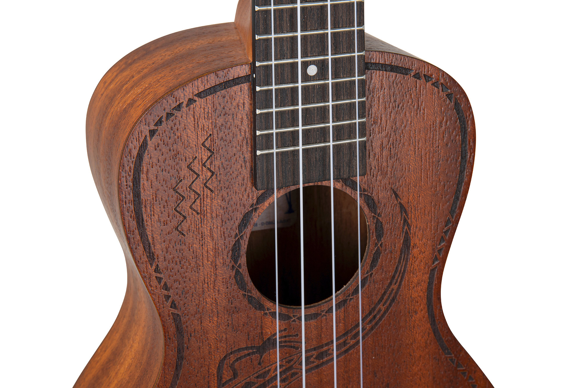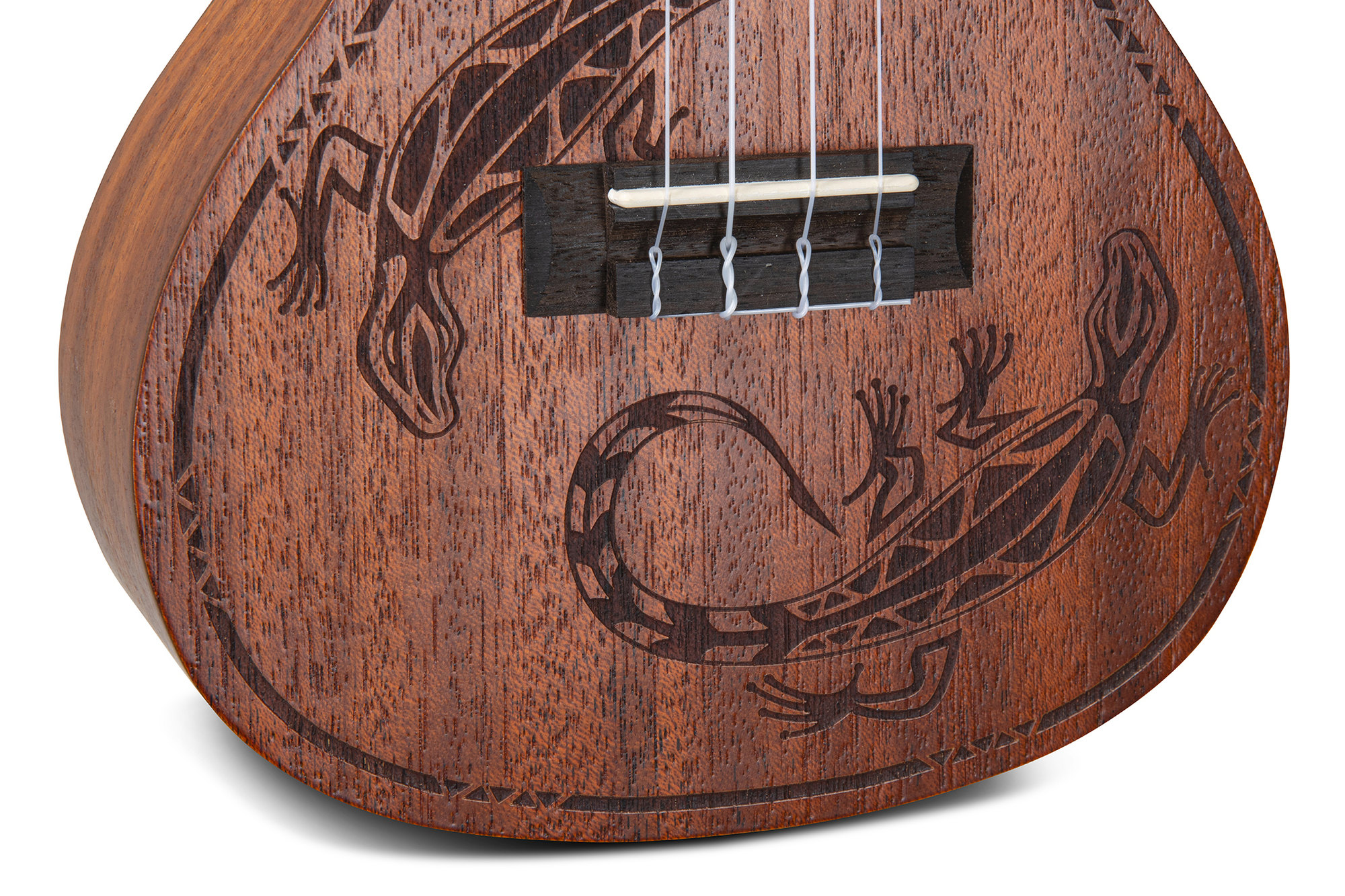 Een bijzonder detail is het laser-gegraveerde design op de bovenkant, dat deze Lizzard Chase een unieke, artistieke uitstraling geeft. De laurel toets en brug bieden een prettige speelervaring en dragen bij aan de warme, natuurlijke look van het instrument.