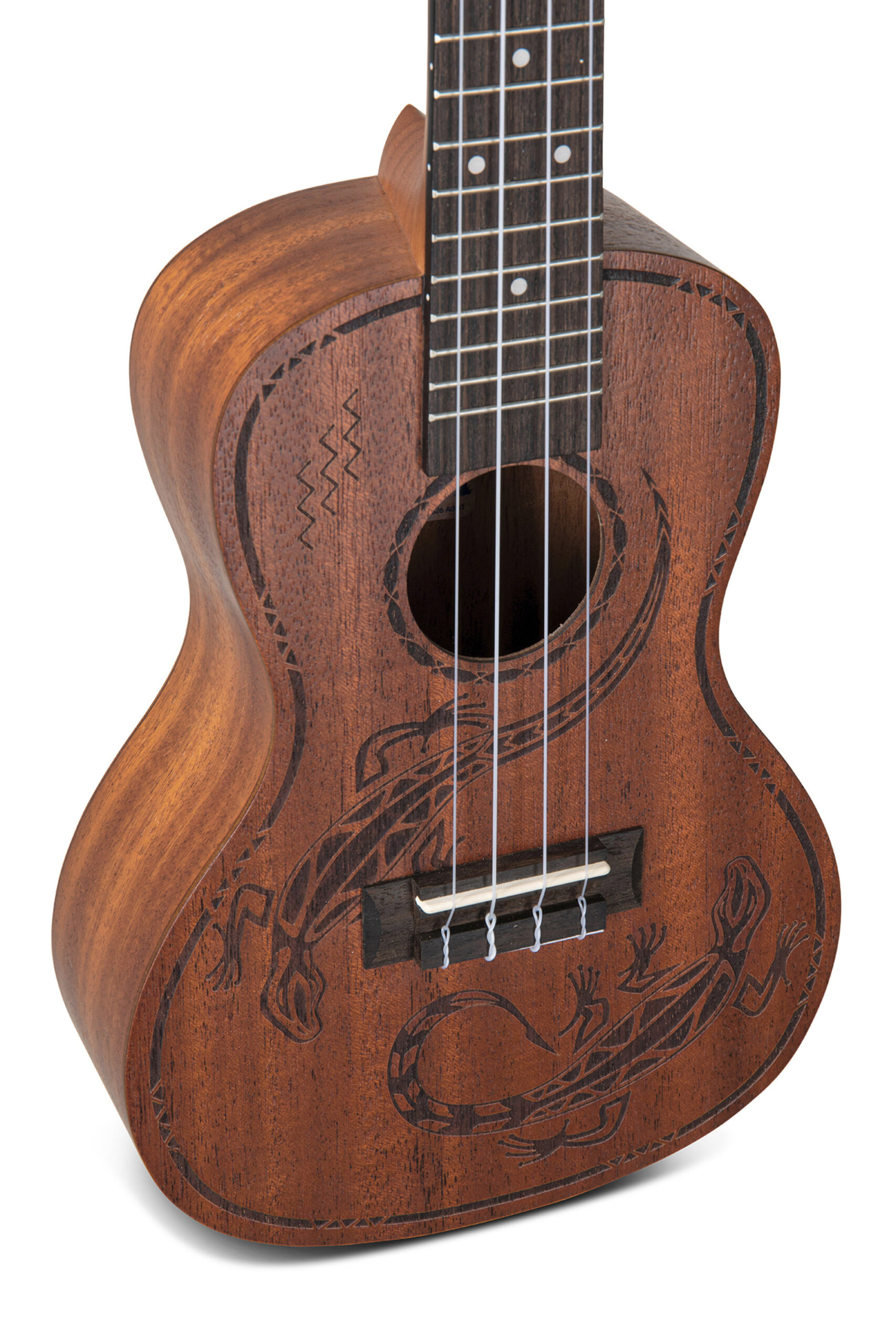 Met een mensuur van 376 mm en een topkambreedte van 35 mm ligt de hals comfortabel in de hand, ideaal voor soepele akkoorden en melodielijnen. De Manoa Lizzard Chase wordt geleverd met een gepolsterde gigbag, zodat je jouw ukulele veilig kunt meenemen naar les, optreden of vakantie.
