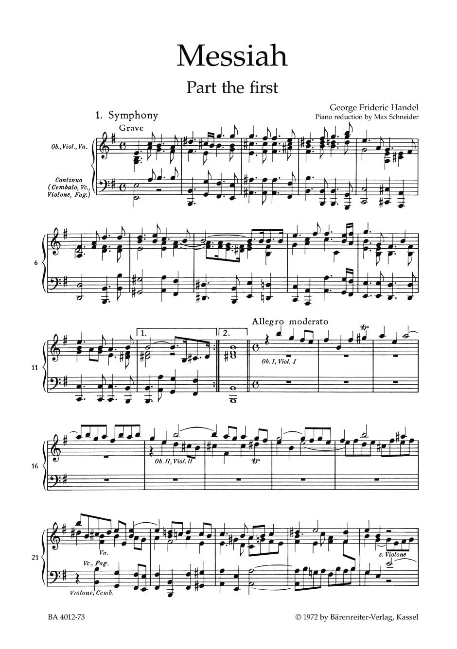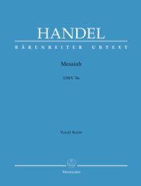 Handel: Messiah HWV 56 (Vocal Score) Barenreiter Urtext [Words/Text in English], BA 4012-73. 345 pages. Vocal Score based on the Urtext of the Halle Handel Edition. Oratorio in three parts.