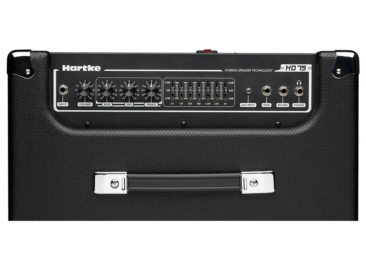 De HD75 is uitgerust met alle aansluitingen die een moderne bassist nodig heeft: een Aux-ingang voor meespelen met tracks, een hoofdtelefoonuitgang voor stille oefensessies, volledige effects loop en twee ingangen voor actieve en passieve bassen. De solide metalen grille en de stevige behuizing met molded strap handle maken de combo bovendien klaar voor intensief gebruik.