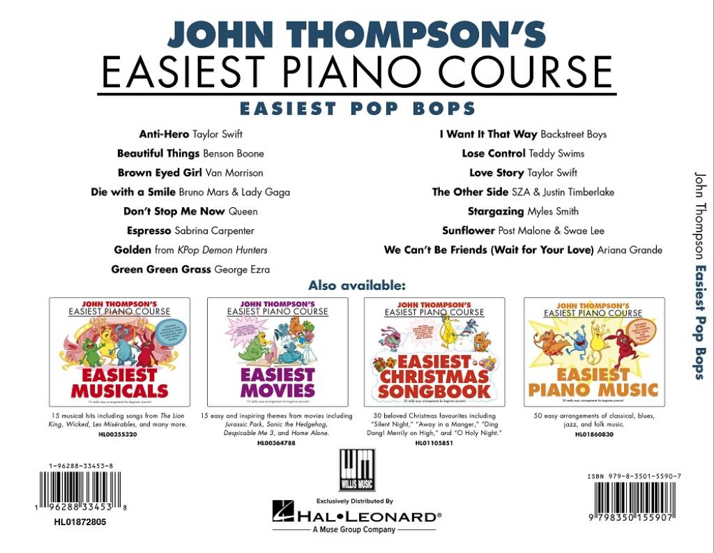 John Thompson’s Easiest Pop Bops maakt deel uit van de legendarische John Thompson’s Easiest Piano Course, een van de meest geliefde pianomethodes ter wereld. Deze uitgave biedt een selectie van eenvoudige, leuke en herkenbare popnummers, speciaal gearrangeerd voor beginnende pianisten.