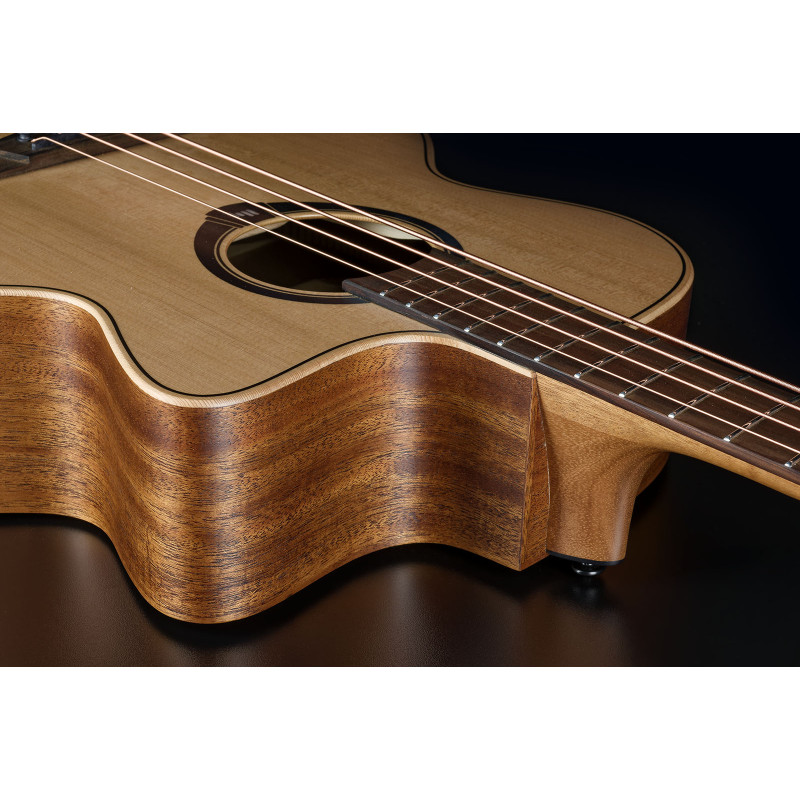 De jumbo body en het massief rood cederhouten bovenblad leveren een krachtige, diepe basrespons met veel definitie en volume. De Khaya mahonie zij- en achterkant zorgen voor een warme, gebalanceerde klank die zowel in een ritmesectie als bij solo-optredens uitstekend tot zijn recht komt. De duurzame Brown Brankowood toets en brug bieden een stabiel speelgevoel en zijn bovendien een milieubewuste keuze.