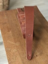 Handgemaakt met gebruik van plantaardig gelooid leer. Onverslijtbare leren gitaarband.