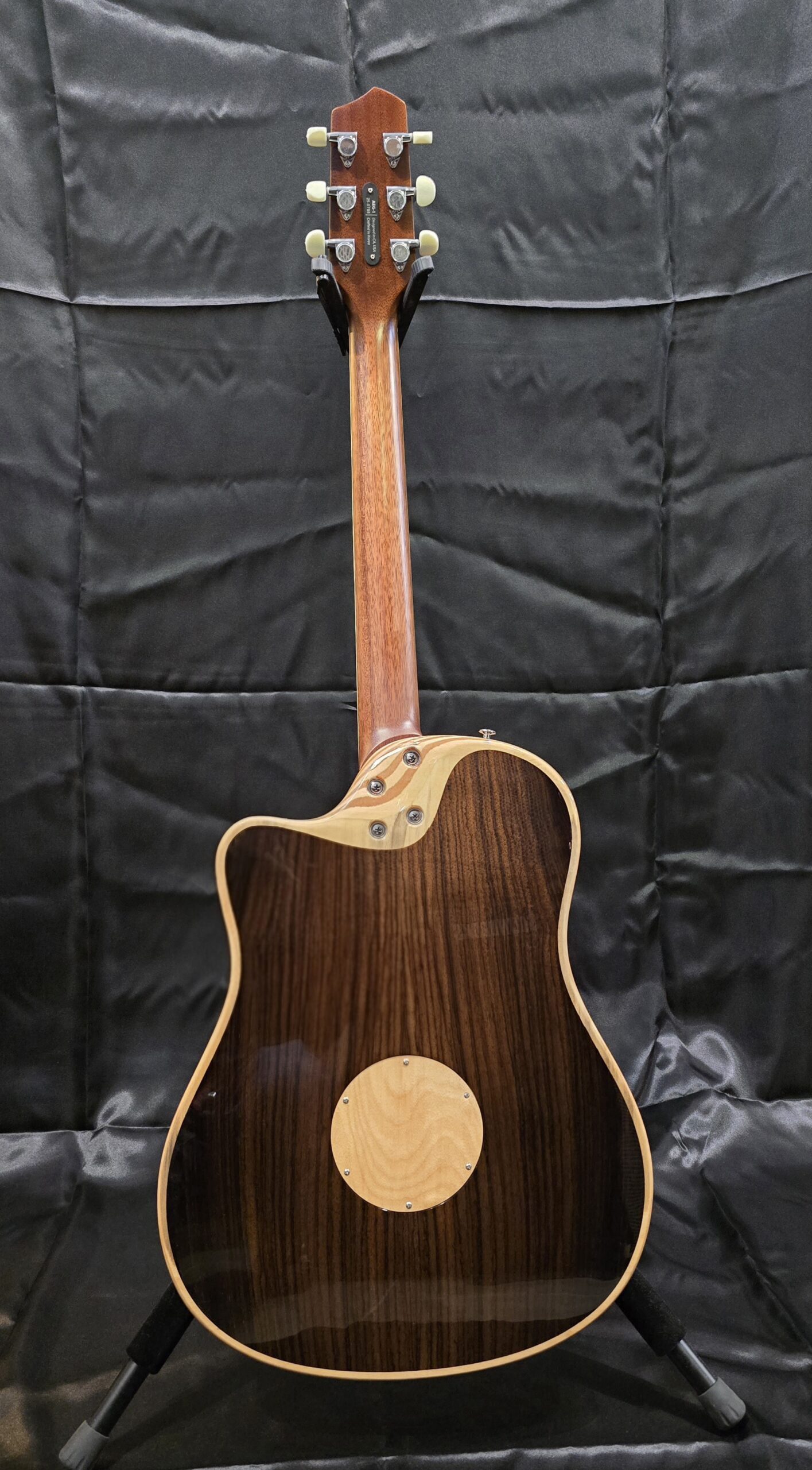 BODY: populierenmultiplex frame met massief sitka sparren top met scalloped bracing en Indisch palisander achterkant