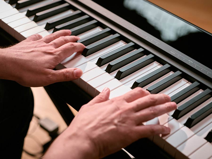 Compact mechaniek met realistische pianogevoel, matte afwerking voor optimale finesse - Krachtig ingebouwd speakersysteem