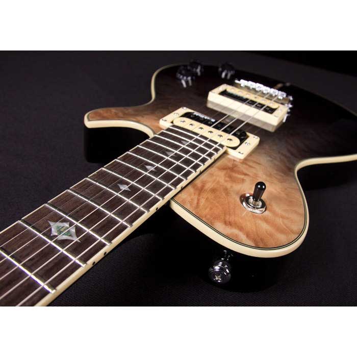 De Patriot Instinct Bold Custom heeft een resonante bodyconstructie met een carved maple top, die zorgt voor helderheid, punch en een rijke attack. De body is uitgevoerd met een prachtige, opvallende afwerking die de houtnerf extra tot leven brengt. De comfortabele mahogany set-neck geeft extra sustain, warmte en een klassieke feel.