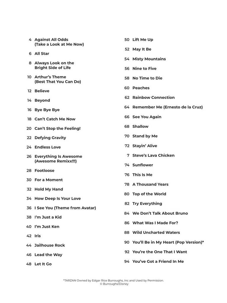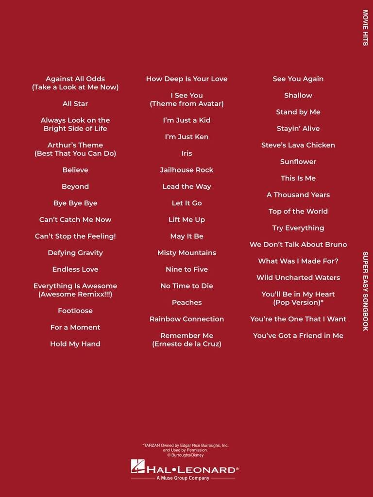 Breng je favoriete filmmomenten tot leven op de piano met Movie Hits – Super Easy Songbook! Deze collectie bevat 47 bekende liedjes uit een breed scala aan populaire films, allemaal gearrangeerd in Hal Leonard’s Super Easy Piano formaat. Elk stuk bevat eenvoudige melodieën voor de rechterhand met letternamen in de notenhoofden, basisakkoorddiagrammen voor de linkerhand en geen pagina’s omslaan, waardoor het ideaal is voor beginners of gelegenheidsspelers. De liedjeslijst beslaat tientallen jaren van filmfavorieten, van hartelijke ballads als What Was I Made For? en A Thousand Years tot energieke hits als Footloose en Can’t Stop the Feeling! Of je nu houdt van geanimeerde avonturen, filmische liefdesverhalen of popliedjes van het witte doek, dit boek maakt het gemakkelijk om muziek te spelen van de films waar je het meest van geniet.