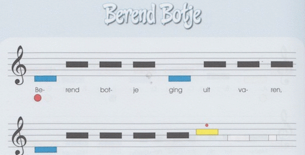 Notenbalken met gekleurde blokjes in plaats van noten!
