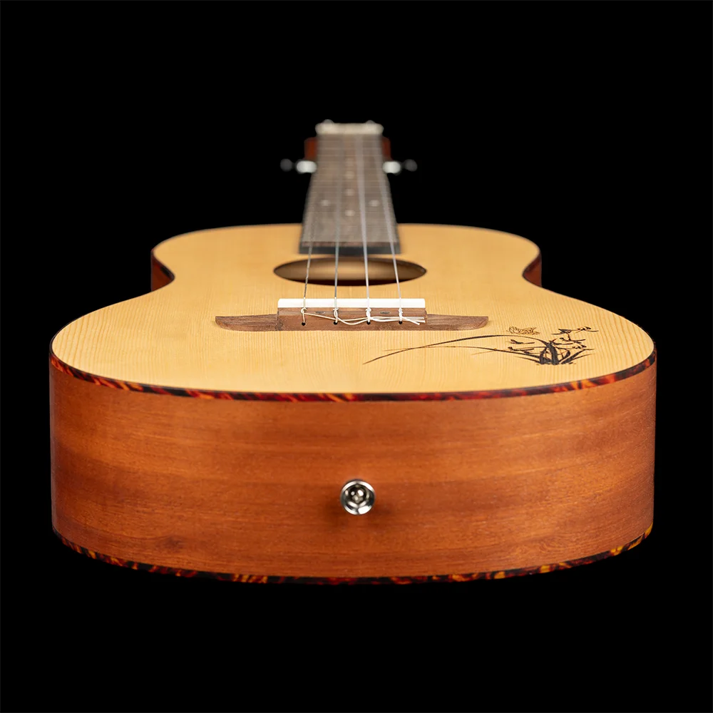 De combinatie van een sparren top met sapele zij- en achterkant levert een heldere attack met een krachtige midrange en een warme, volle ondertoon. De bariton bodymaat met een mensuur van 485 mm en een diepere klankkast zorgt voor een breed, volwassen geluid dat moeiteloos een ruimte vult. Dankzij de lage D-stemming (D–G–B–E) voelt deze ukulele voor veel gitaristen direct herkenbaar aan.
