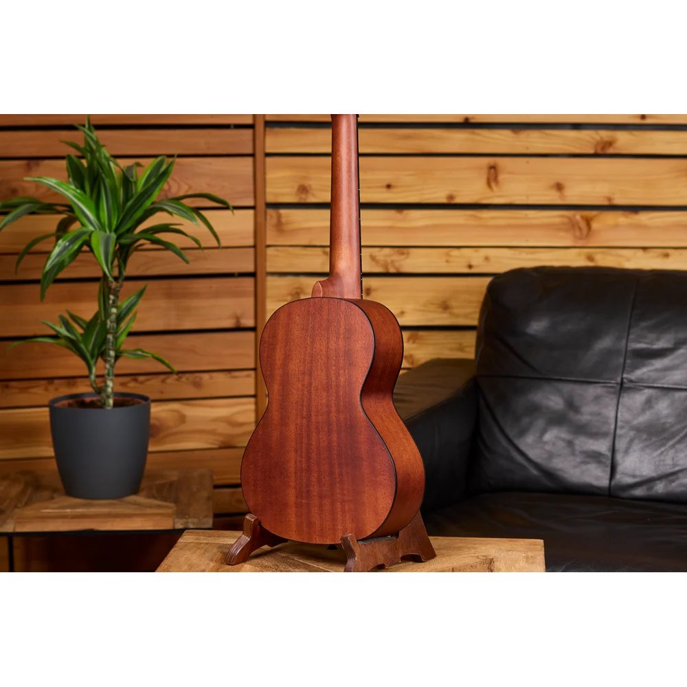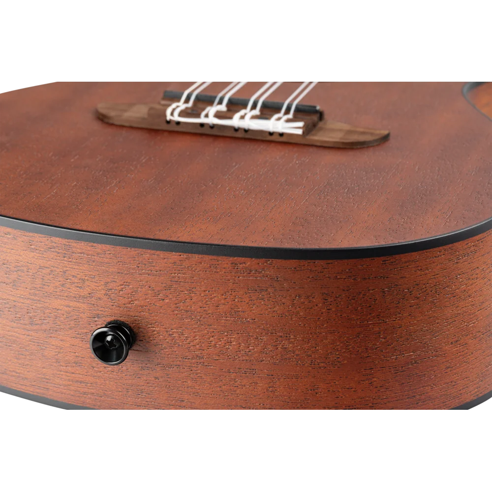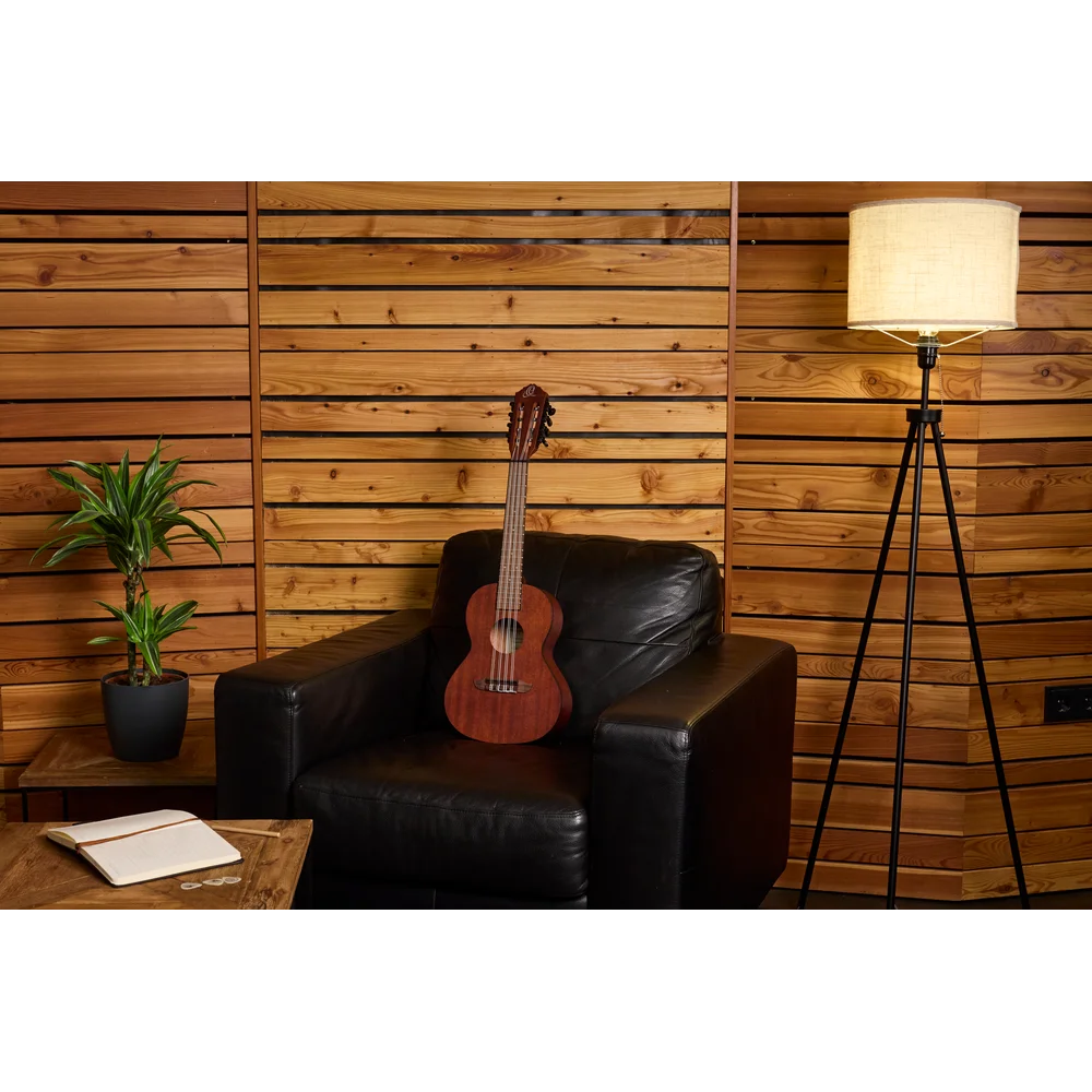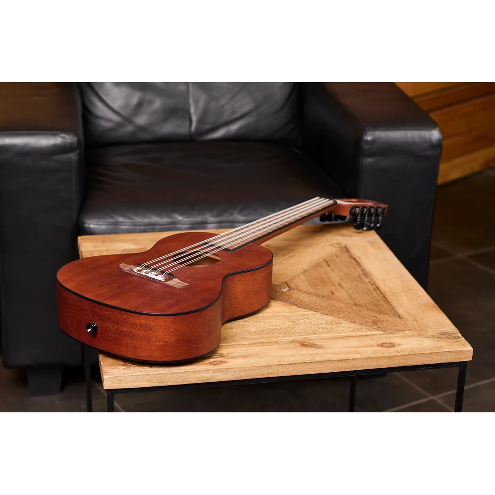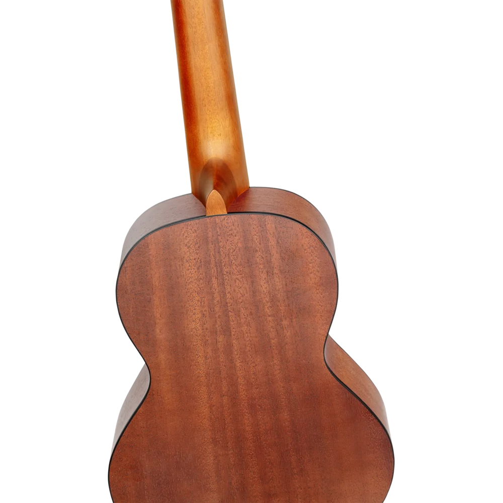 De mahonie top, zij- en achterkant zorgen voor een warme, gebalanceerde klank met een duidelijke middenfocus. In combinatie met de tenor body en de mensuur van 430 mm levert dit een krachtige projectie en meer snaarspanning, wat ervaren spelers extra controle en dynamiek geeft. De 8-snarige configuratie vraagt echter om meer kracht en nauwkeurigheid in de vingers, waardoor deze ukulele minder geschikt is voor absolute beginners.