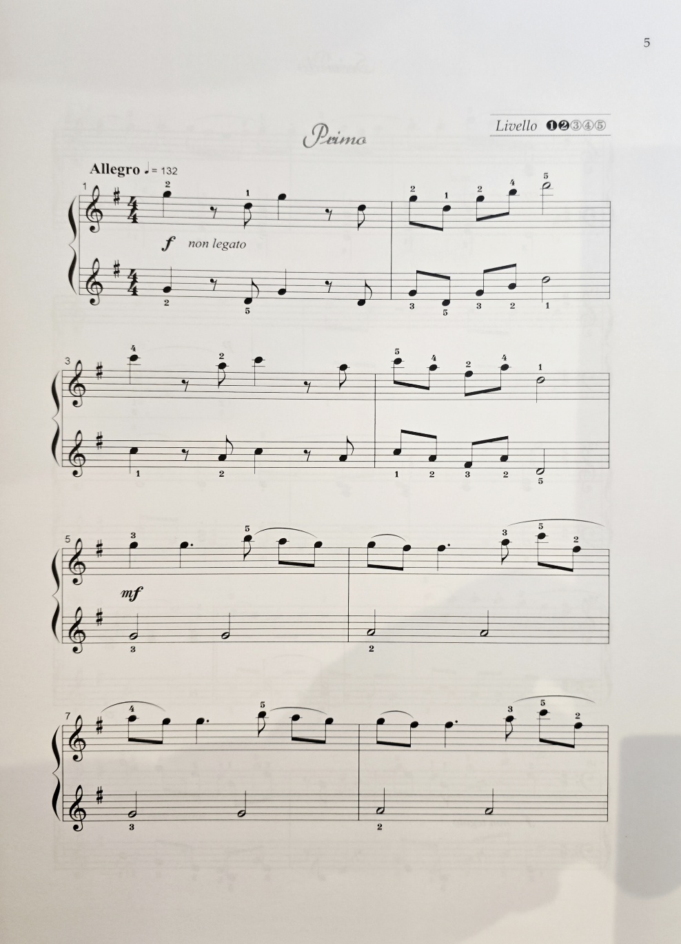 Eenvoudige bladmuziek voor piano 4-handen met verschillende moeilijkheidsgraden.