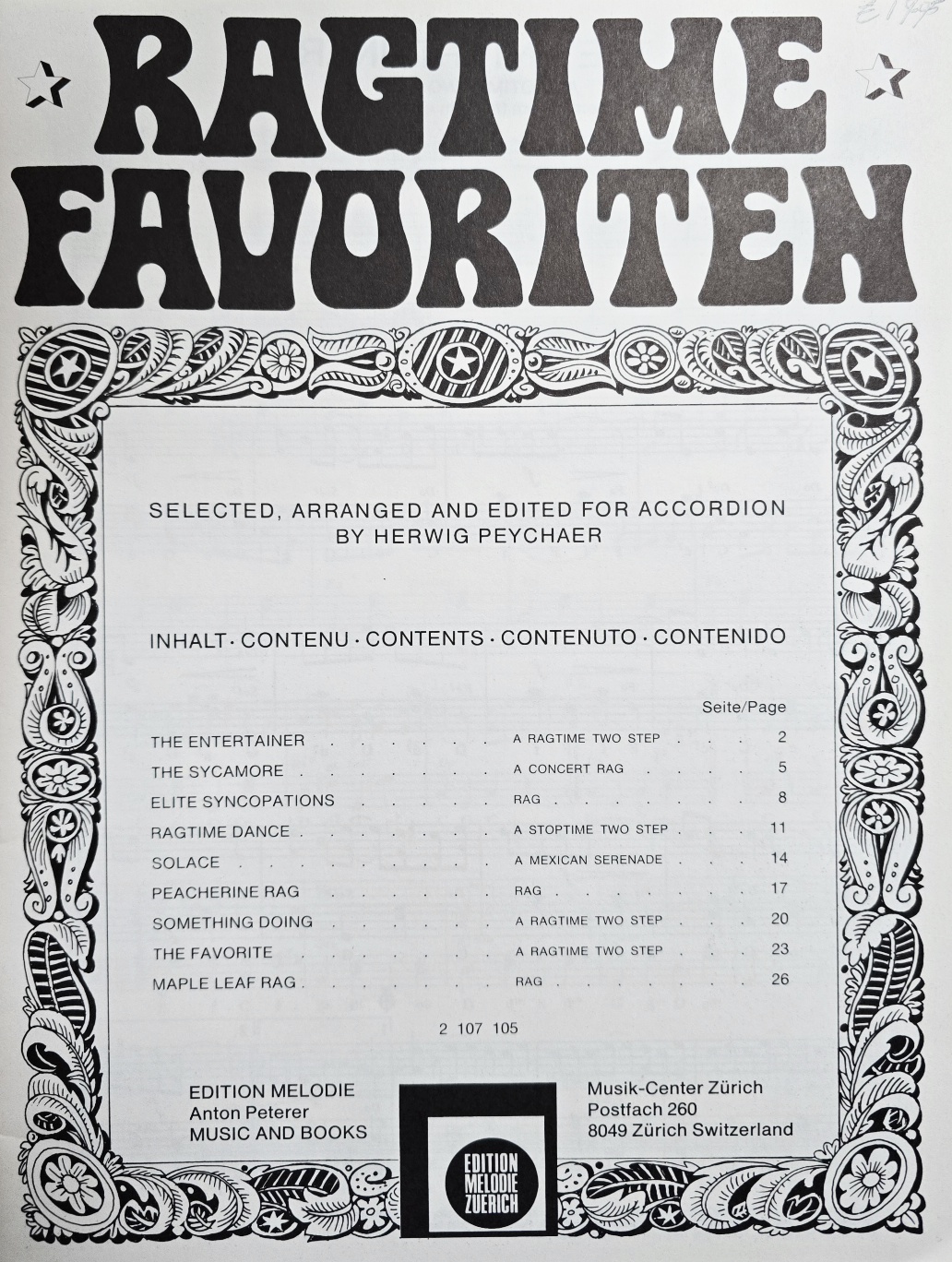 Bekende Ragtime nummers van Scott Joplin gearrangeerd door Herwig Peychäer.