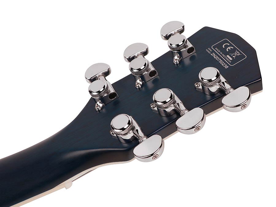 Dankzij de C-shape hals, edgeless™ ebben fretboard en 12″ radius speel je comfortabel en soepel, terwijl het luxueuze uiterlijk met flamed veneer en ivoor pickguard een klassieke uitstraling geeft.