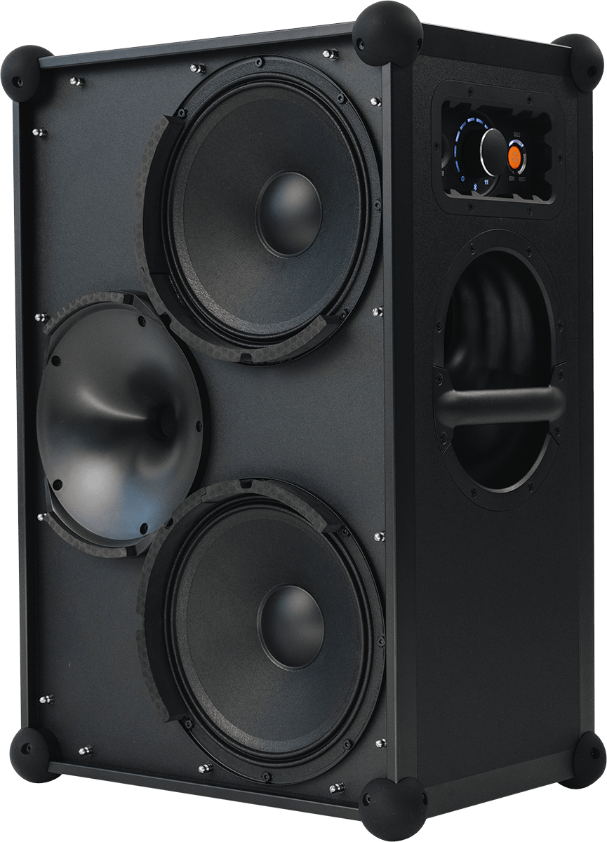 - Drivers: 2 × 10” woofers, 1 × 1” compressie-tweeter