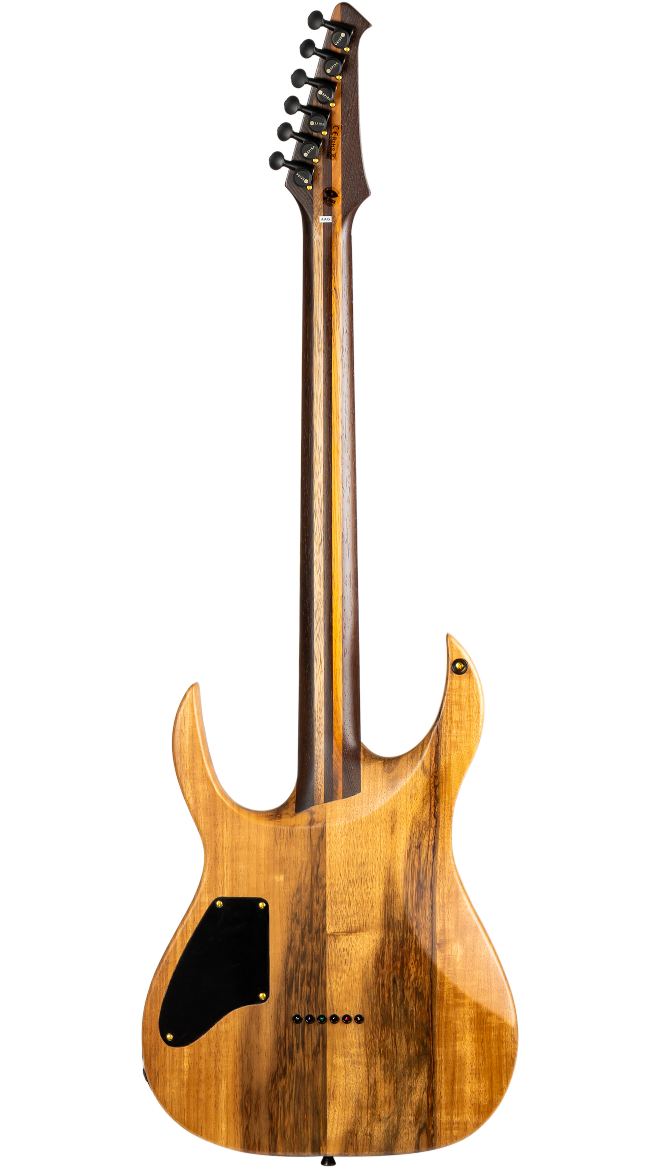 De Black Limba Body met Wenge top levert een krachtige, gedefinieerde klank met duidelijke mids en uitstekende articulatie. Deze combinatie zorgt voor een strak laag, uitgesproken middengebied en helder hoog, ideaal voor moderne rock- en metalstijlen.