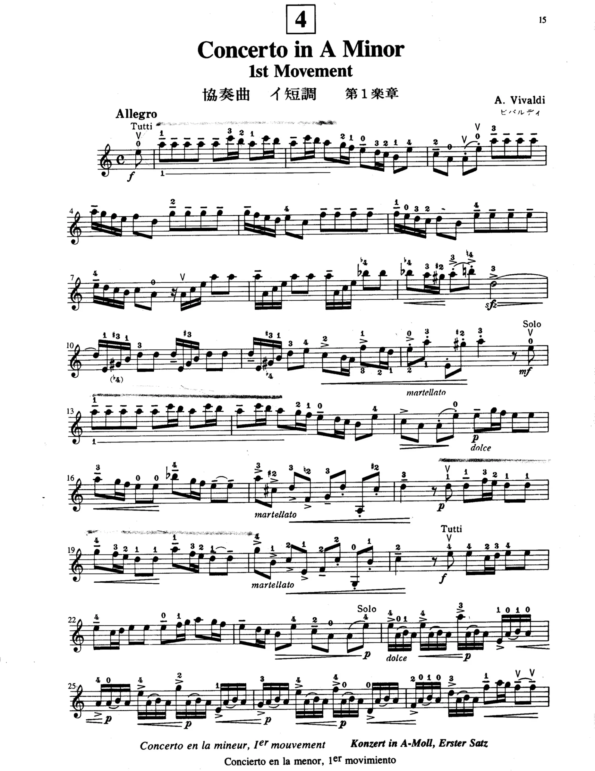 Contents include: Lullaby (Tonalization) ( F. Schubert); Lullaby (Tonalization) (J. Brahms); Concerto No. 2 in G Major, Op. 13, 3rd Movement (F. Seitz); Concerto No. 5 in D Major, Op. 22, 1st Movement (F.Seitz); Concerto No. 5 in D Major, Op. 22, 3rd Movement (F. Seitz); Concerto in A Minor, 1st Movement, Op. 3, No. 6 (A. Vivaldi/T. Nachez); Concerto in A Minor, 3rd Movement, Op. 3, No. 6 (A. Vivaldi/T. Nachez); Perpetual Motion, “Little Suite No. 6” (K. Bohm); Concerto for Two Violins in D Minor, BWV 1043, 1st Movement, Violin II (J. S. Bach)