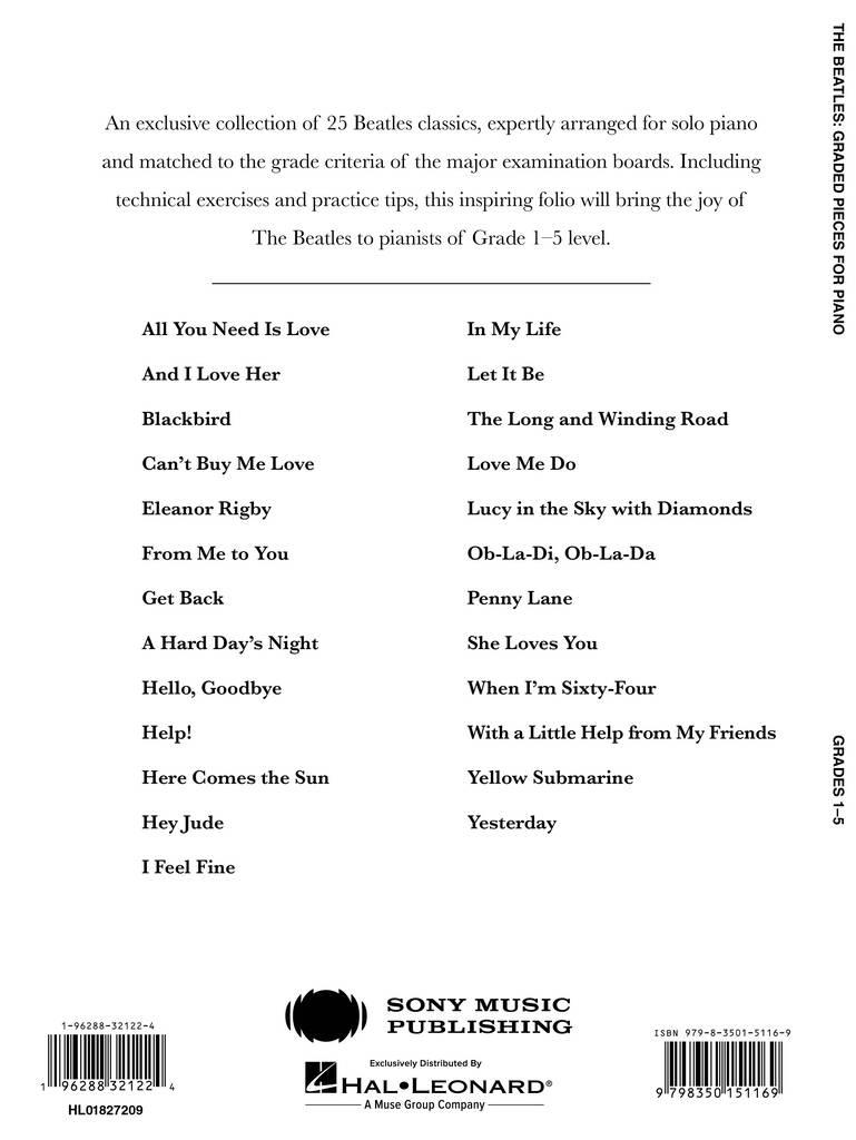 The Beatles: Graded Pieces for Piano – Grades 1–5 is een ideaal pianoboek voor spelers die hun techniek en muzikaliteit stap voor stap willen ontwikkelen met muziek van The Beatles. De stukken zijn zorgvuldig gerangschikt volgens de internationale pianogrades 1 t/m 5, waardoor het boek perfect aansluit bij lesmethodes en examensystemen.