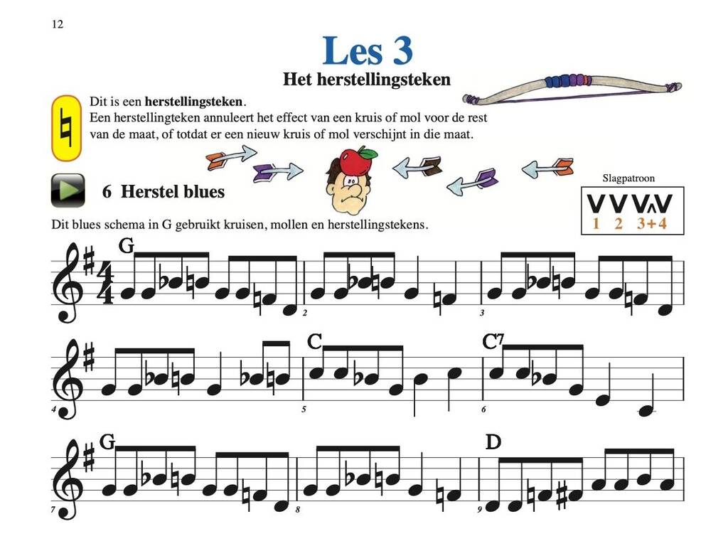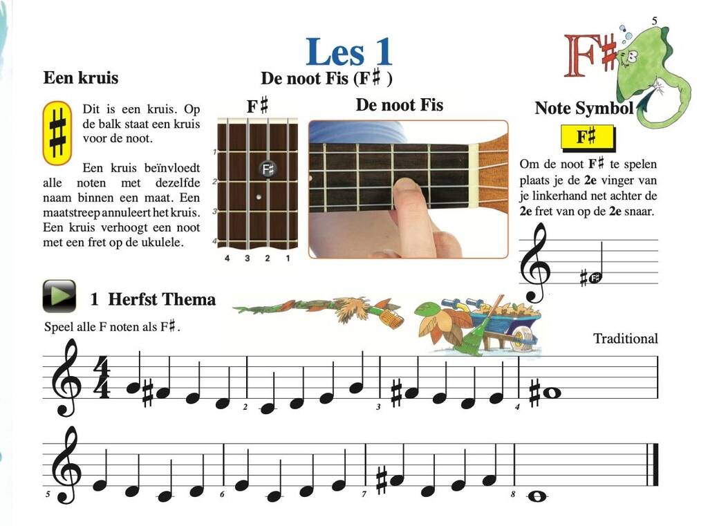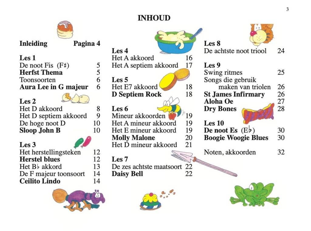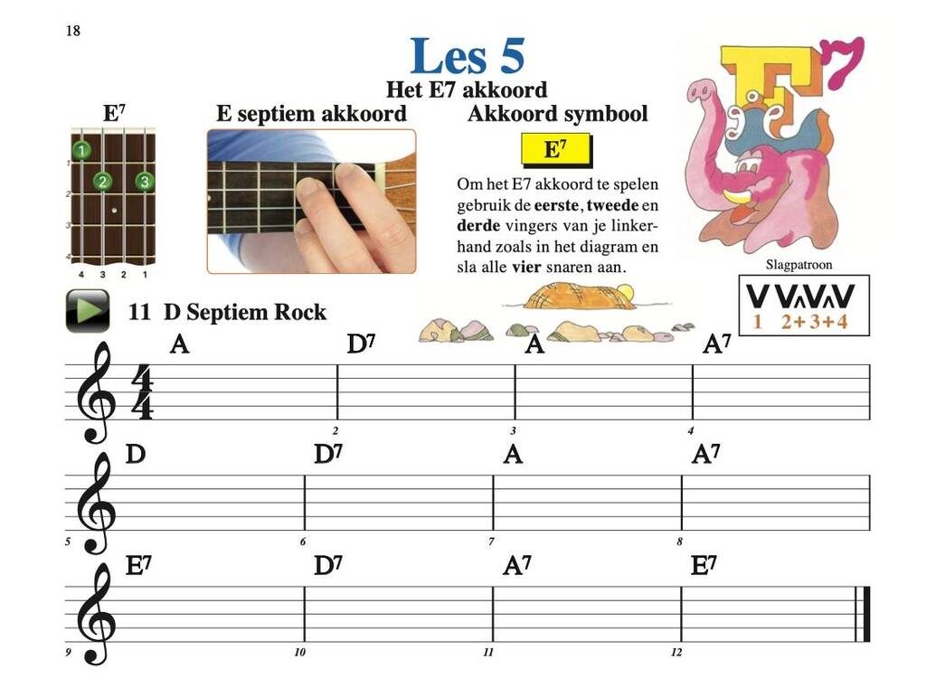 Ukulele voor Kinderen Boek 3 bevat veel nieuwe akkoorden waaronder majeur, mineur en septiem akkoorden die het voor de student mogelijk maakt een grote variëteit aan songs te spelen. De student maakt kennis met kruisen stamtonen. Mollen hebben we geleerd in boek 2. Boek 3 bevat ook een inleiding tot triolen en swing ritmes die het mogelijk maken om veel meer songs te spelen die gebruik maken van deze ritmes. Informatie wordt weergegeven in gekleurde vlakken en kleur illustraties worden overal gebruikt om de student te stimuleren en de aandacht vast te houden. Met de kennis en vaardigheden die de student in deze serie heeft verworven is het makkelijk om desgewenst over te gaan op de gitaar.