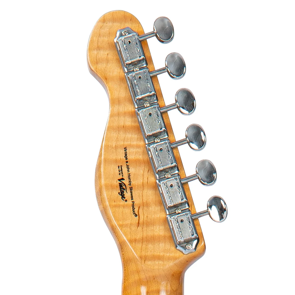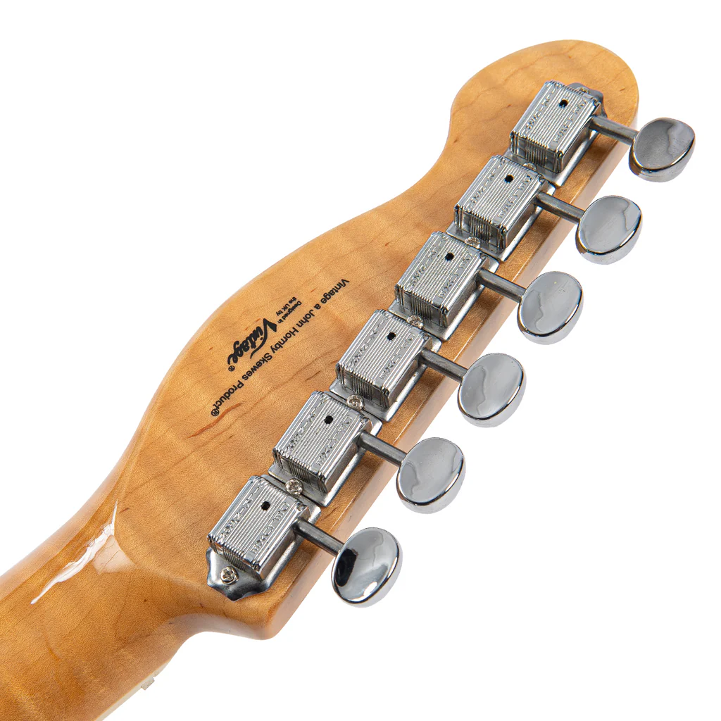 Ook qua hardware staat deze V72 zijn mannetje. De Wilkinson Platinum Series pickups: soapbar in de hals en humbucker aan de brug, leveren een breed klankpalet dat moeiteloos schakelt tussen helder, warm, bluesy of strak. De WVFS hardtail brug, WJ55 machineheads en Graphtech 43 mm topkam garanderen uitstekende tuningstabiliteit en intonatie.
