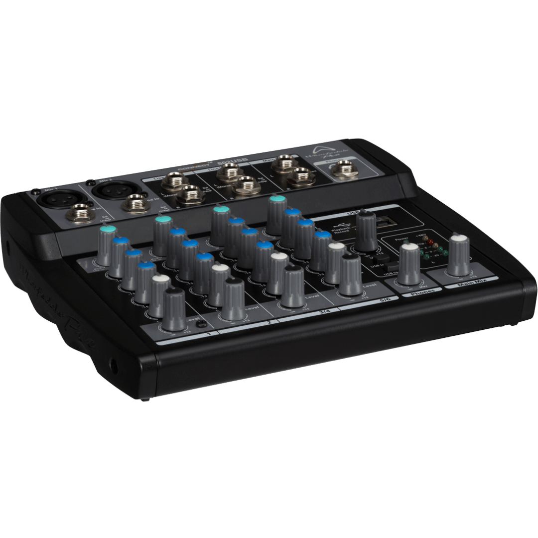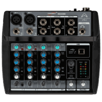Compacte en veelzijdige 8-kanaals mixer met 2 XLR-mic inputs, 6 line-ingangen, 3-band EQ en USB-interface. Ideaal voor kleine optredens en home studio setups.