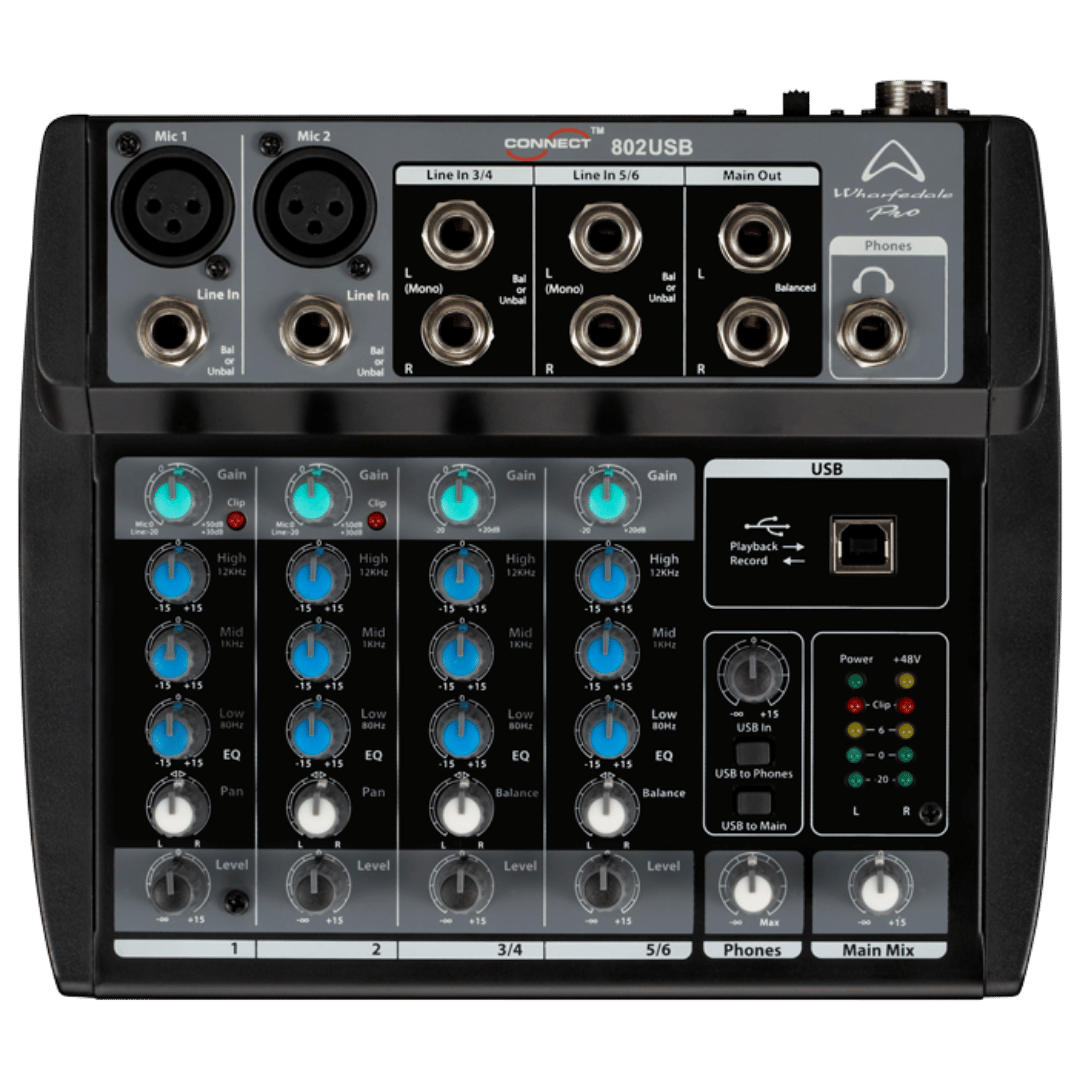 Wharfdale Pro Connect 802USB Compacte 8 Kanaals Mixer met Audio Interface