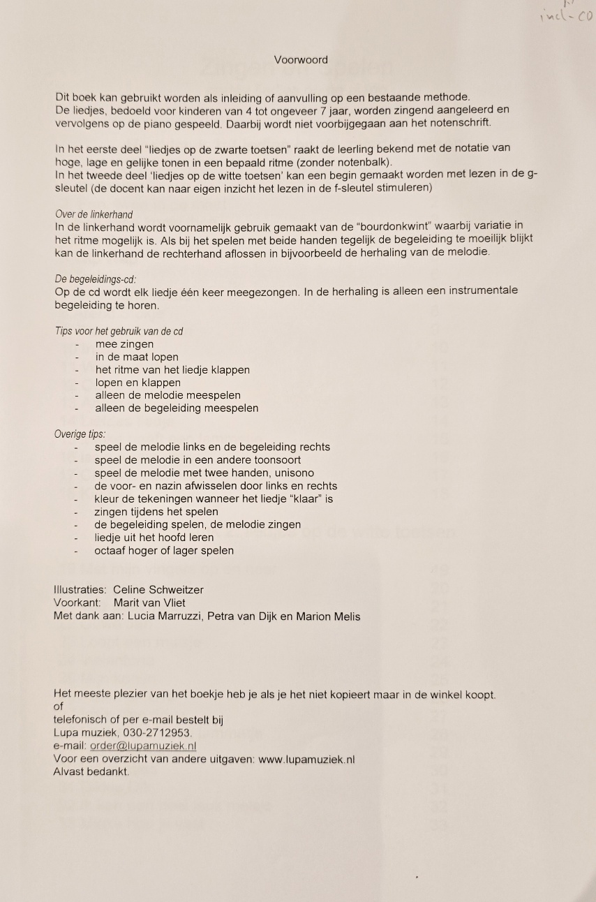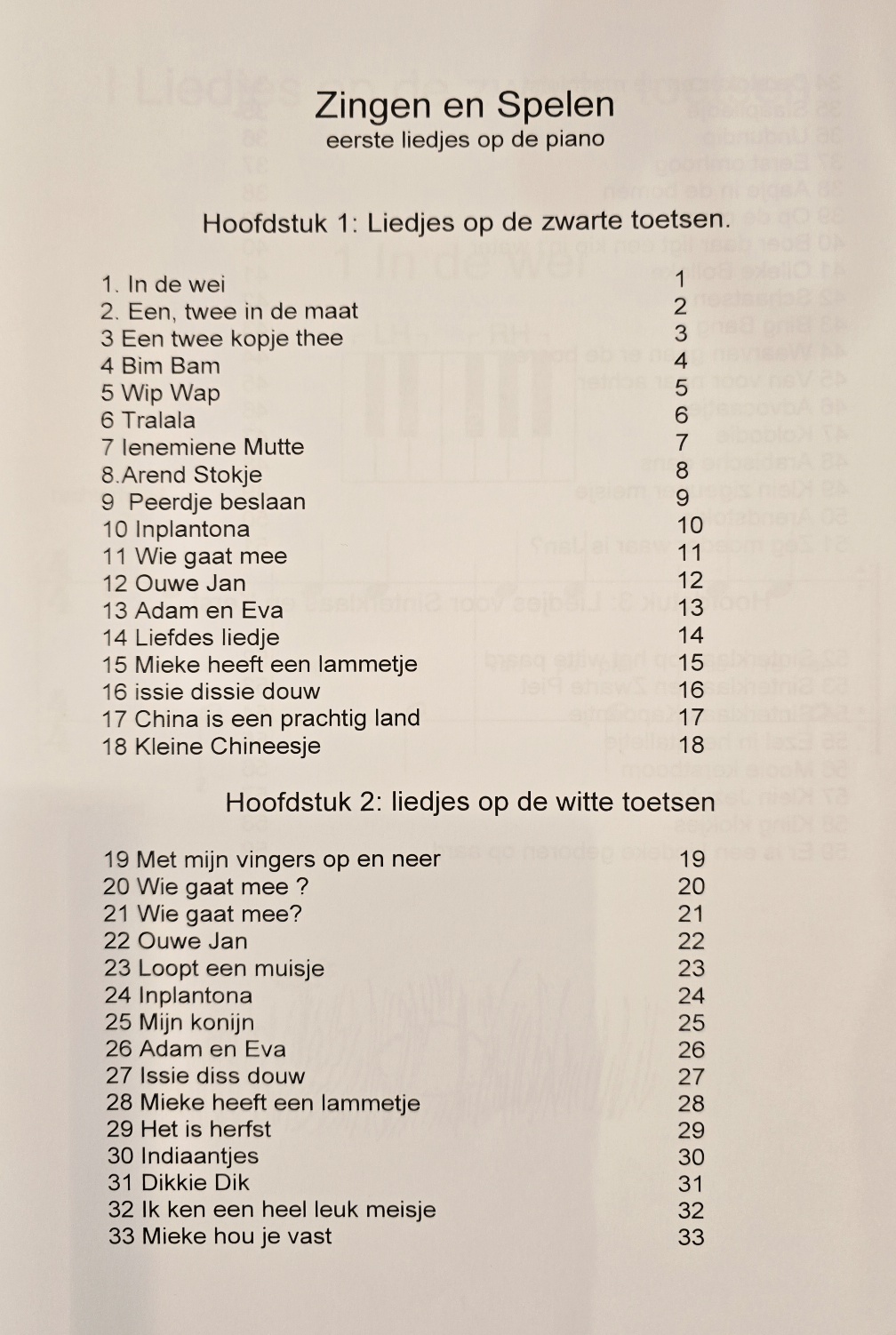 • Inhoud: Bevat eenvoudige eerste liedjes met bijbehorende tekst om de muzikale basis te leggen.
